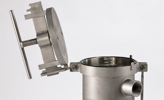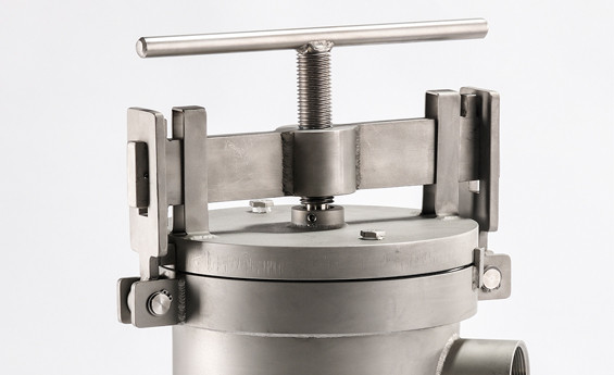 The TRBF Series filter bag vessel features a single point centre bolt closure which is engaged by a T Bar. The design provides quick opening and closing of the housing, and requires no tools for operators. The lid is hinged ensuring easy handling. Location guides are present to enable perfect positioning when closing the lid.